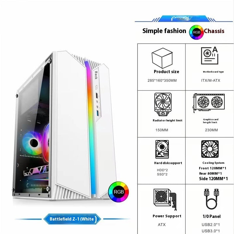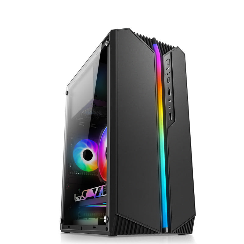 - Sleek Glass Design: The PC RGB Tempered Glass Case combines style and function with its compact build and clear tempered glass side panel, letting you display your hardware setup. A built-in LED bar on the front adds a touch of customizable lighting for a modern gaming aesthetic.
